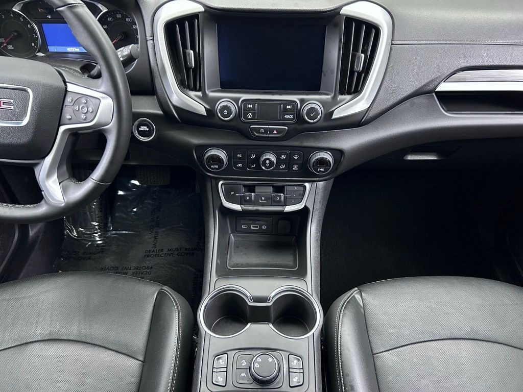 Inside, the Terrain SLT pampers you with a wealth of premium amenities. Sink into the plush, perforated leather-appointed seats and enjoy the comfort of heated front seats. Stay connected with the 8-inch GMC Infotainment Audio System, featuring wireless Apple CarPlay and Android Auto integration.