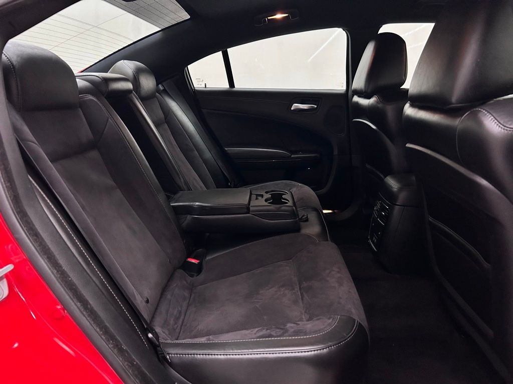 This Charger R/T also features a striking Red exterior, complemented by a sleek and modern interior with premium Nappa/Alcantara performance seats. The intuitive Uconnect 4C Nav system with an 8.4" display puts all your connectivity and navigation needs at your fingertips.