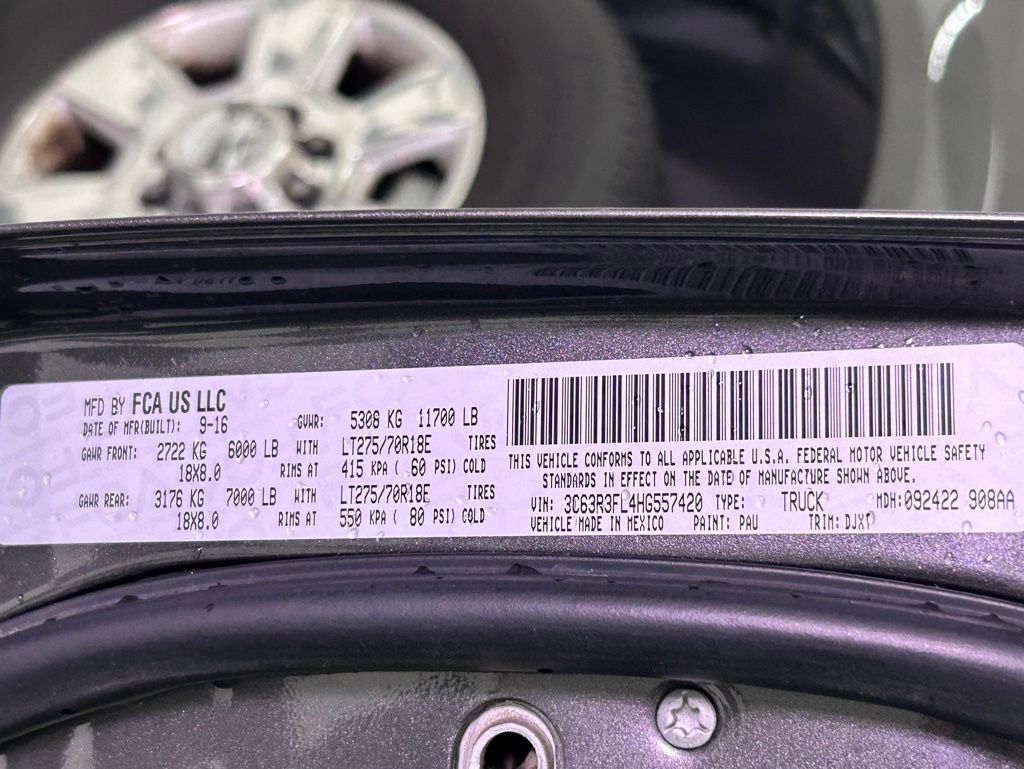 Ready to work! Priced below KBB Fair Purchase Price! Granite Crystal Metallic Clearcoat 2017 Ram 3500 Laramie Longhorn 4WD Aisin 6-Speed Automatic Cummins 6.7L I6 Turbodiesel LEATHER, BACKUP CAMERA, MOONROOF, PREMIUM SOUND, HEATED SEATS. NEW TURBO, NEW FUEL FILTERS, NEW COOLANT RESERVOIR.